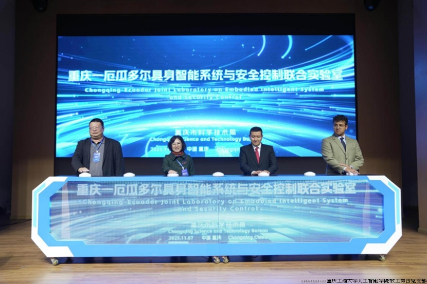 2025年11月7日,由重庆市教委、教育部学校规划建设发展中心主办,重庆工商大学承办的2025国际产学研用合作会议智能制造与绿色发展分会场暨重庆-厄瓜多尔具身智能系统与安全控制联合实验室揭牌仪式在重庆工商大学隆重举行。