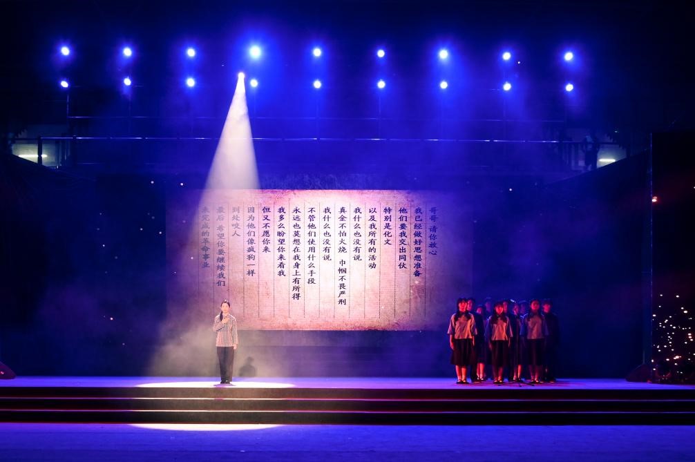 在主题教育“再读红岩”汇报展演环节,重工师生用朗诵《再读红岩》、歌曲《红梅赞》、情景表演《我的自白书+狱中八条》、舞蹈《心中的那抹红》、朗诵《红岩家书》、舞蹈《绣红旗》、情景表演《与新时代重工青年对话》、合唱《不忘初心》、情景表演《梦里》、舞蹈《魅力“新”重庆》、朗诵《红旗颂》为大家带来了一场精彩绝伦的汇报展演。