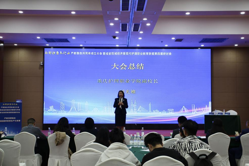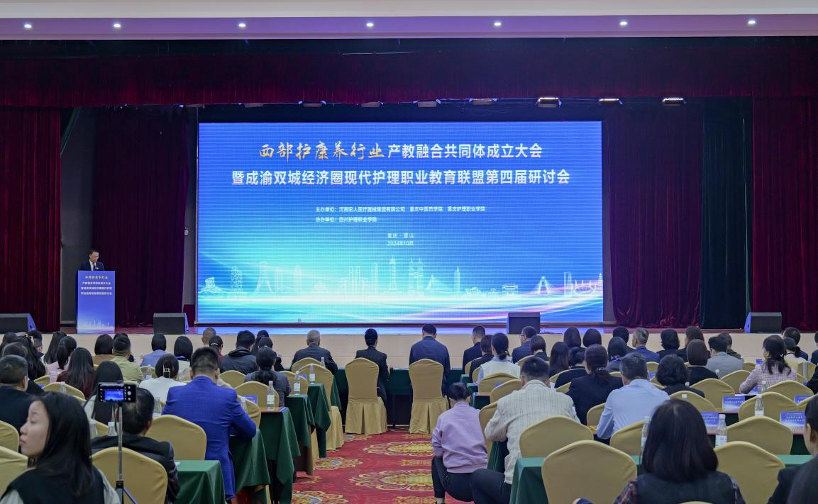 2024年10月25日,西部护康养行业产教融合共同体成立大会暨成渝地区双城经济圈现代护理职业教育联盟第四届研讨会在璧山隆重召开。此次盛会旨在深入贯彻中共中央关于职业教育工作的决策部署以及习近平总书记的重要指示批示精神,积极打造具有高辨识度与强大影响力的高水平产教融合共同体。来自西部的150余家行业组织、学校、科研机构及上下游企业的近400位专家学者与代表齐聚一堂,共同探讨产教融合新时代,展望职业教育新未来。