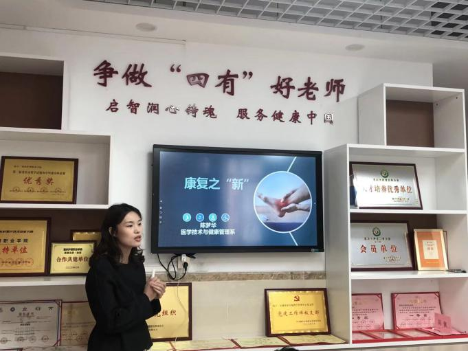 陈梦华老师以“康复之‘新’”为题,系统阐述了智慧康养、脑机接口、康复机器人等新技术在行业中的规范应用与发展趋势,强调新标准对推动康复服务走向系统化、精准化、智能化的重要作用。毕瑜老师则结合《小组工作》课程,分享了如何将“五新”元素融入教学实践,通过虚拟仿真、项目式教学等方式,提升学生的实务能力与职业认同,打造具有职教特色的“金课”样本。