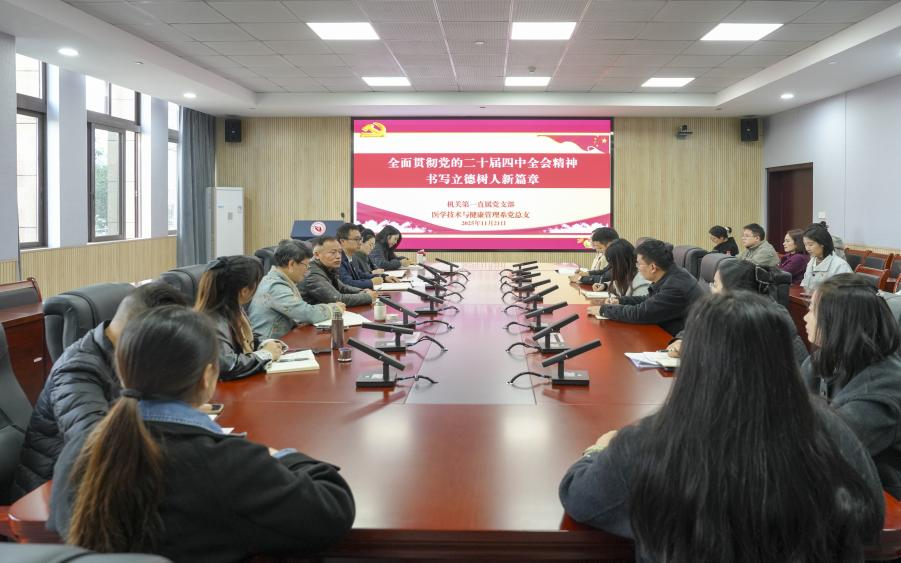 11月21日,我校机关第一直属党支部和医学技术与健康管理系教师党支部联合在明德楼115会议室开展“全面贯彻党的二十届四中全会精神 书写立德树人新篇章”主题党日。双方党组织全体党员参会,并邀请入党积极分子参加。