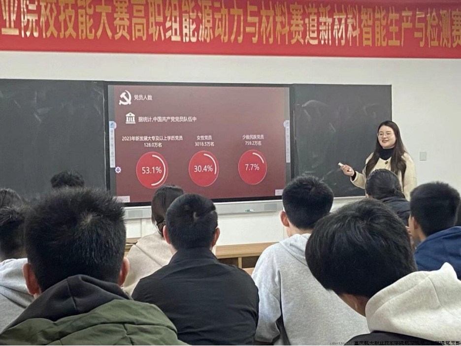 2025年3月20日星期四中午12:30,为进一步加强入党积极分子的思想政治教育,航空机电工程学院在1325教室举办主题为“入党积极分子,如何成为九千万之一”党课培训。本次党课由航空学院党支部组织委员祁莹莹老师担任主讲人,主要由我院的23级入党积极分子参加了此次学习。