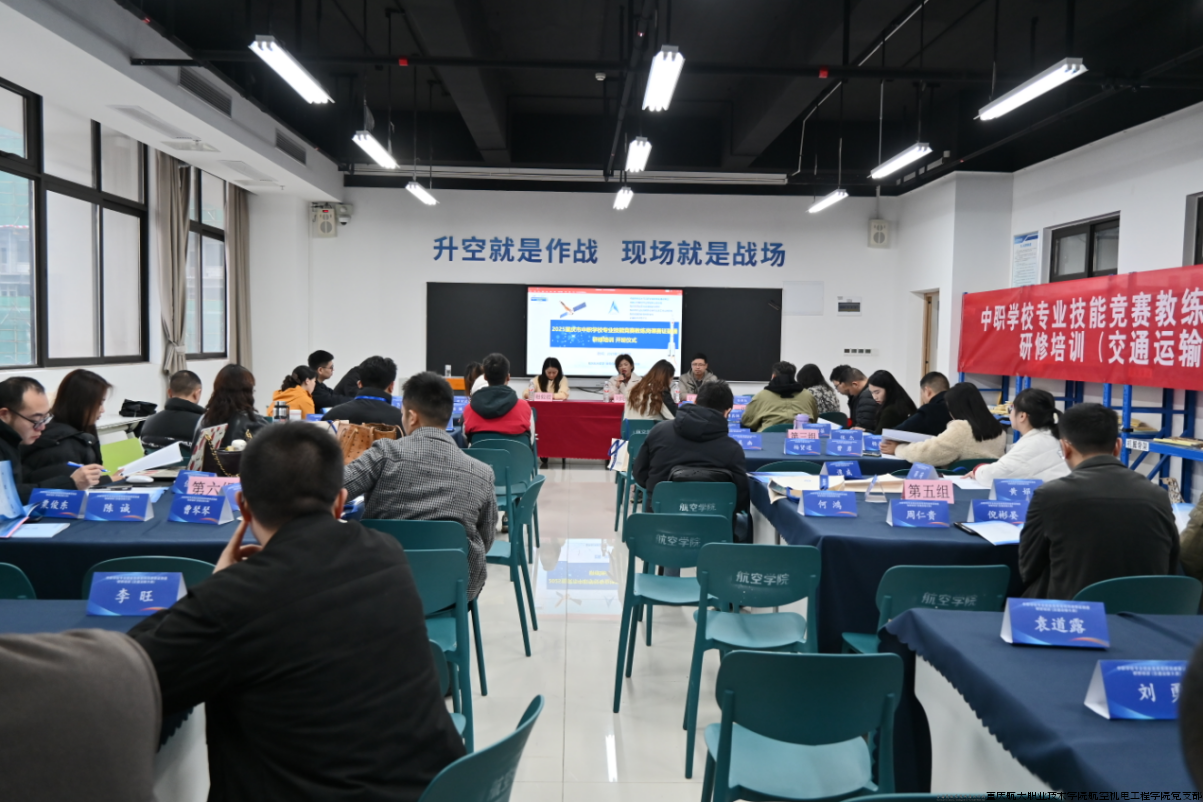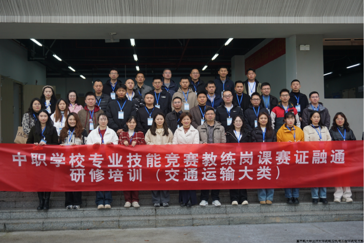 11 月 22 日,2025 年重庆市中职学校专业技能竞赛教练岗课赛证融通研修培训(交通运输大类)在重庆航天职业技术学院两江校区开班,全市各中职学校交通运输类学科60余位教师齐聚于此,开启研修之旅。出席本次开班仪式的领导为重庆航天职业技术学院航空机电工程学院院长兼党支部副书记刘昭琴,航空机电工程学院教学主任吴道明,开班仪式由班主任赵姣姣主持。