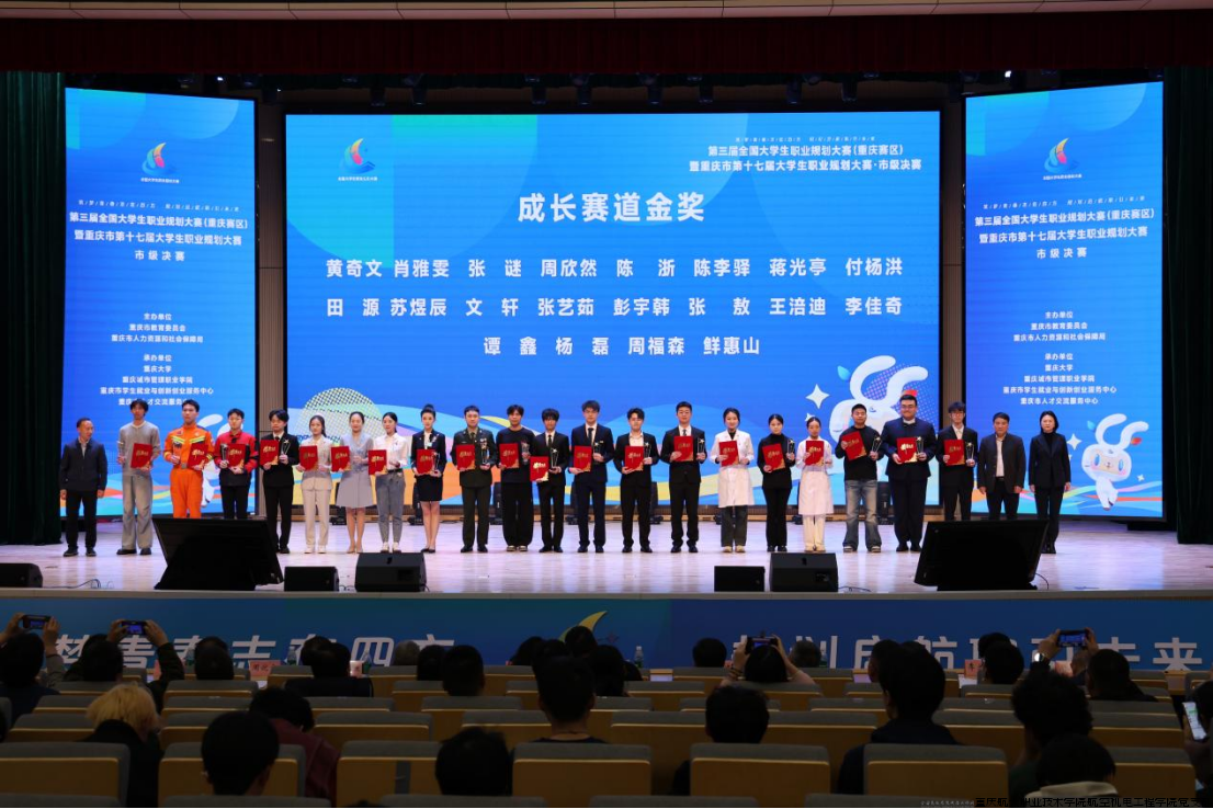 3月11日,第三届全国大学生职业规划大赛(重庆赛区)暨重庆市第十七届大学生职业规划大赛市级决赛圆满落幕。我院参赛选手表现优异,凭借清晰的职业认知、科学的规划路径和出色的现场表现,在众多高校选手中脱颖而出。周欣然同学荣获成长赛道金奖,李小龙同学斩获就业赛道金奖,为学院赢得两项全市最高荣誉!