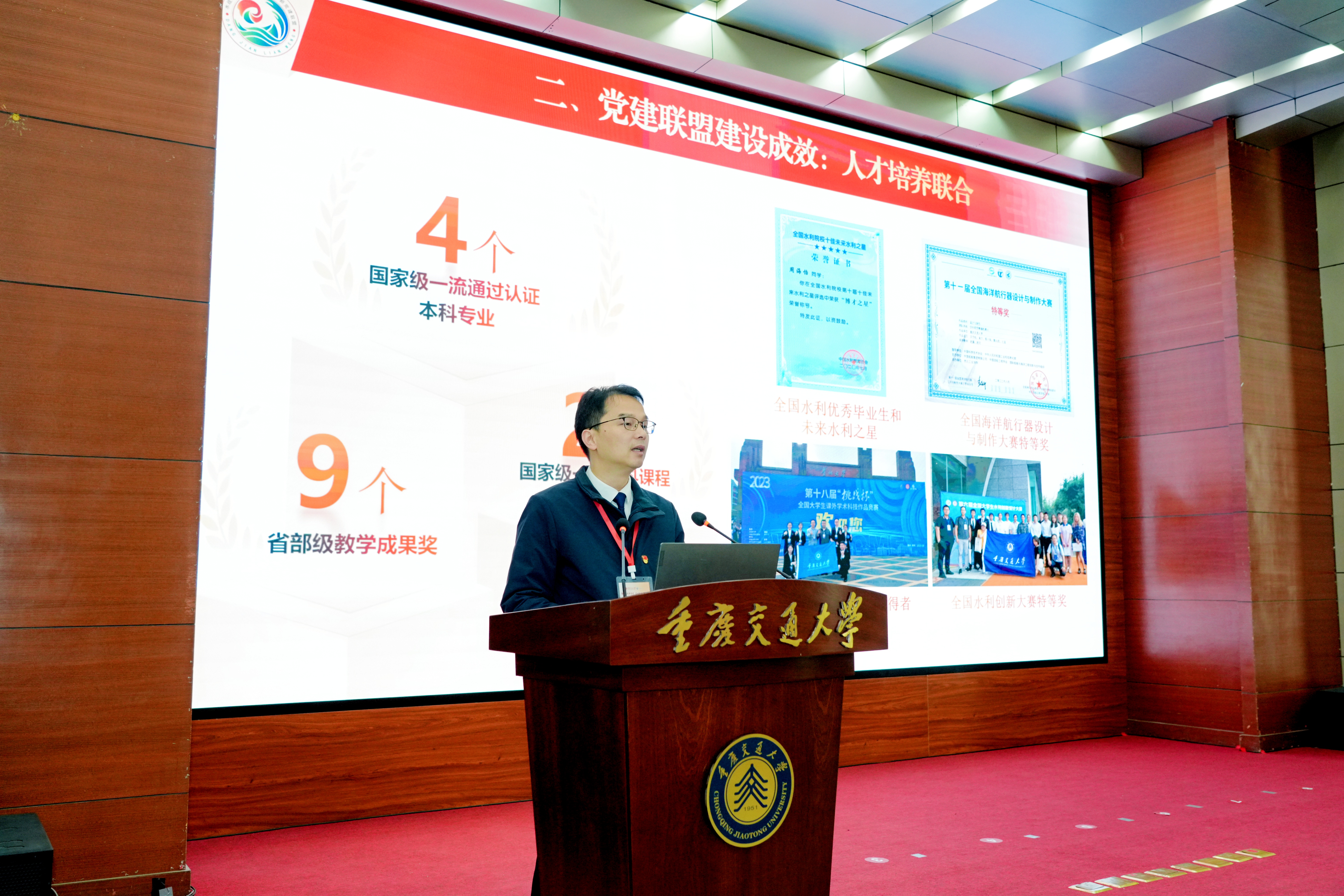 河海学院党委书记叶四桥向各联盟单位和与会嘉宾汇报“水战略与绿色发展协同创新党建联盟”和“地质安全战略与绿色发展协同创新党建联盟”的建设发展情况。党建联盟组建情况:“朋友圈”“战友群”进一步扩大,成员单位已经从2022年成立时的40家、2023年第一届研讨会时的61家,扩大到目前的84家,联盟的影响力持续提升,服务经济社会发展的效能不断增强。党建联盟建设成效:联盟成立近3年来,通过党组织联建、党建活动联办、人才培养联合、科技攻关联动、服务发展联抓等路径,携手举办学习教育和党建活动百余场次,覆盖5000多名师生和联盟单位人员;共建“联培基地”100余个,共同为行业培养了2200余名本硕博高素质人才;联合承担国家重点研发、重大工程科研项目83项,科研经费累计2.63亿元;共建特色服务品牌和项目,开展各类服务活动100多场次,参与人次超过4000次,服务数万居民,有效保障地方经济社会发展;相关做法及成效受到中央电视台、全国高校思想政治工作网、新华网、重庆日报、华龙网等主流媒体报道超过600次。党建联盟未来发展思路:未来,联盟将采取“同心同向”战略,以高质量党建引领事业高质量发展为核心,以重大项目为抓手,加强各单位发展战略协同,持续增强联盟服务国家、行业和地方发展的效能。加强资源共享,充分发挥联盟资源对成员单位事业发展的支撑力。