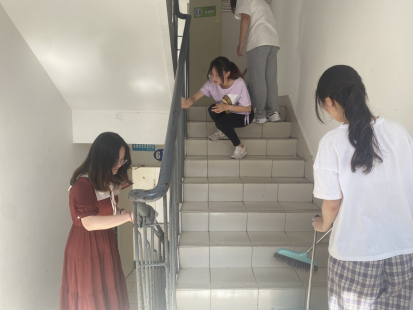 学员们手持扫帚清扫走四周的落叶与灰尘,用抹布仔细擦拭干净楼道及洗阅中心的栏杆和门窗。从细小做起,从大家所需要的地方做起,五四精神从整洁的环境中缓缓流露,青春的汗水在此挥洒。