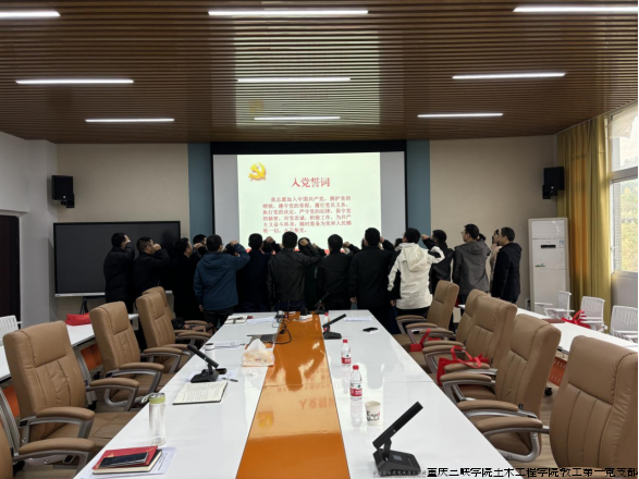 全体党员重温入党誓词,高举右拳,庄严宣誓:“我志愿加入中国共产党,拥护党的纲领,遵守党的章程……”。铮铮誓词、字字千钧,时刻提醒着每位党员不忘初心,进一步坚定忠诚履职尽责、服务学生的决心。