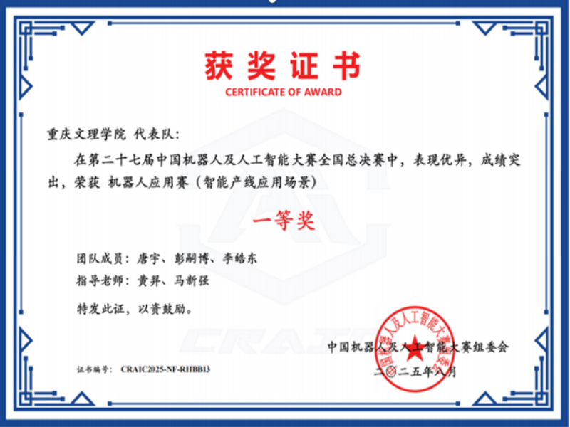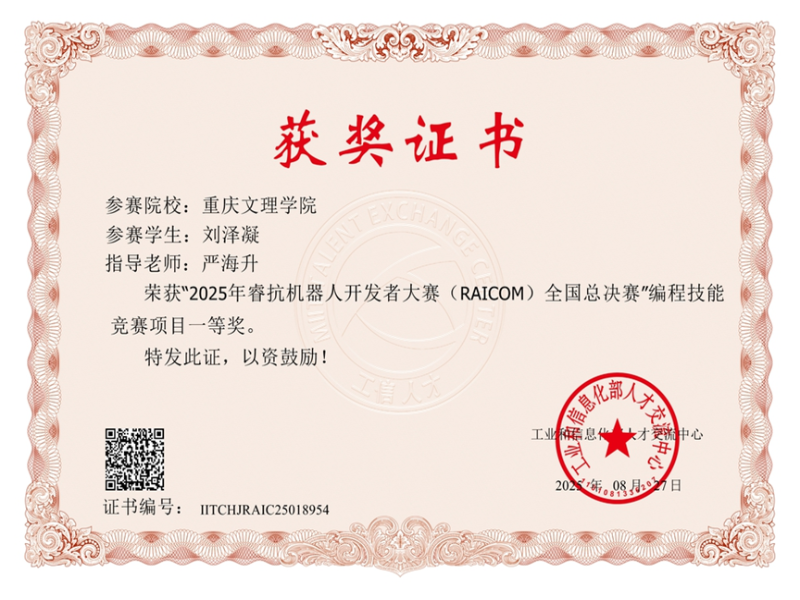 学生彭靖、杨承橙、潘佳兰在第五届全国高校计算机能力挑战赛人工智能赛道以全国第三名获卓越奖(一等奖前4授予卓越奖);胡泽民同学代表重庆队出战中华人民共和国职业技能大赛、在移动应用开发赛道以全国第四名获优胜奖(前五名授予“全国技术能手”称号),重庆市高技能人才工作联席会办公室为此为学校发来贺信。一系列亮眼成果,充分印证了党建引领下学院高质量人才培养的显著成效。