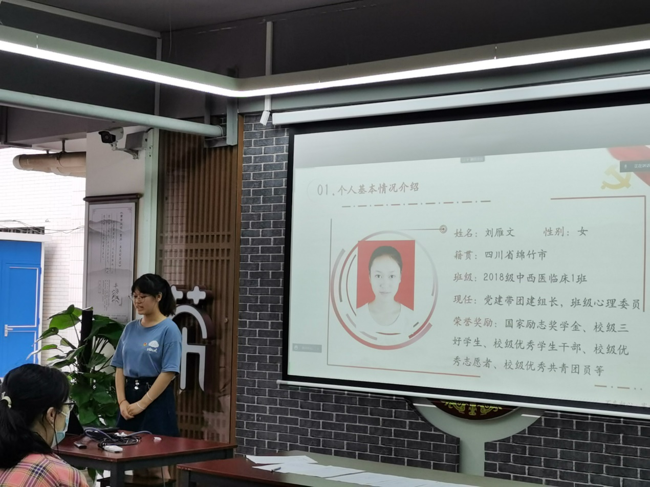 会议第一项内容为中医药学院学生第一党支部预备党员转正大会。胡航,蒋佳,李建莉,刘晓菊,邓冬铌,刘雁文六名同志汇报了个人情况。六名同志汇报了自己的入党动机、学习工作情况等,充分展现了中医药学院第一党支部各位青年后备军的风采和担当,在各个方面都力争上游,充分体现了第一党支部“栽树育人”的培养理念。在各位预备党员汇报完个人情况后,入党介绍人介绍各位预备党员们的相关情况,表明意见。最后,与会党员经过充分讨论,结合各位预备党员在预备期间的表现进行了投票表决,对他们的优点提出表扬,同时也指出了他们的不足,并提出改进方法。