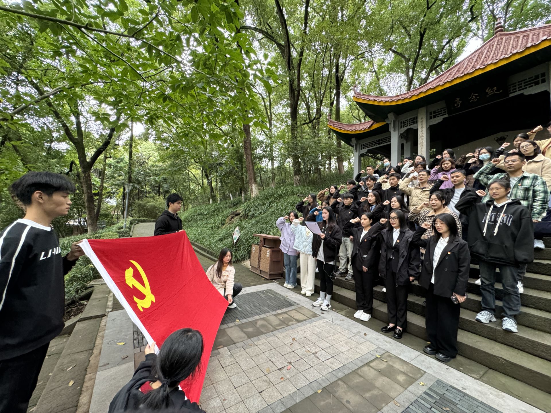 一句誓词,一生践行。在鲜红的党旗下,全体党员佩戴党徽,右手握拳,重温入党誓词,面向党旗庄严宣誓。80个字的入党誓词,是每名党员奋斗不息的精神源泉,表达对党的无限忠诚与崇高敬意。响亮的宣誓声在烈士陵园内久久回响,一句句激荡人心的誓词,激励入党宣誓时的满腔激情和崇高理想,坚定入党宣誓时的庄严承诺和理想信念,吐露对党真情,厚植爱国情怀。宣誓结束后,由淬炼商学院党总支纪检委员曾璐讲道,入党誓词中的承诺将伴随我们一生,激励我们对党忠诚,为党的事业奋斗不止。全体师生党员在为学生服务的过程中,务必发挥先锋模范作用,与学生齐头并进,共创辉煌。