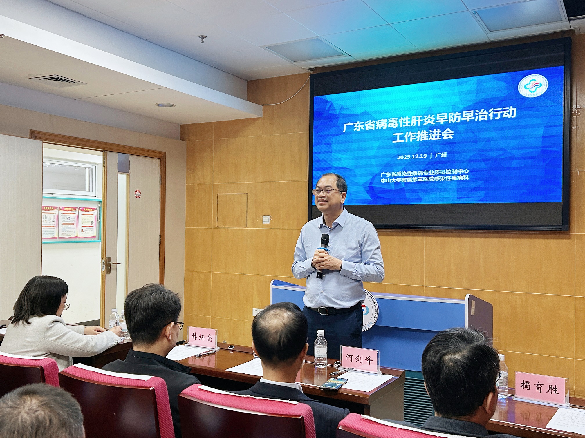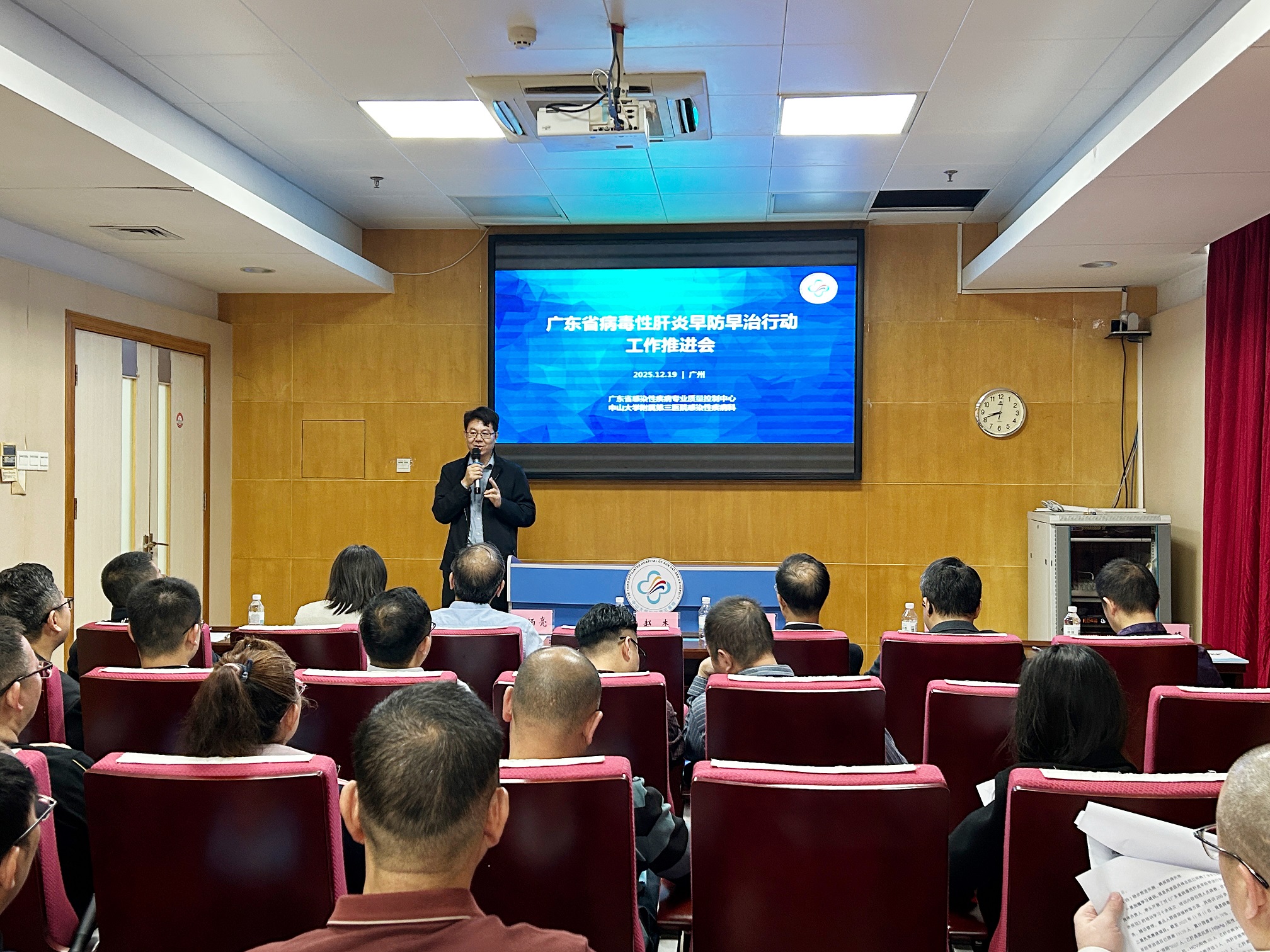 “羊城岁暮气如熏,木叶垂丹尚映云。”我科为全面总结前一阶段广东省公共卫生与重大疾病防治工作领导小组办公室开展的广东省病毒性肝炎早防早治行动,深入总结交流肝炎筛诊治管中的经验、困难与挑战,部署下一阶段重点任务,全力推进我院负责的梅州、肇庆、汕头、潮州、阳江市病毒性肝炎早防早治工作迈向新台阶,2025年12月19日,在我院召开病毒性肝炎早防早治行动推进会。广东省卫生健康委应急管理处赵杰副处长,广东省疾病控制中心何剑峰首席专家、邵晓萍主任医师,梅州、肇庆、汕头、潮州、阳江市等20个县市感染性疾病科负责人、业务骨干,以及我院医务部揭育胜部长,感染科林炳亮主任,郑玉宝、张卡、张宇锋、张绍全等专家参加了会议并互相交流。
