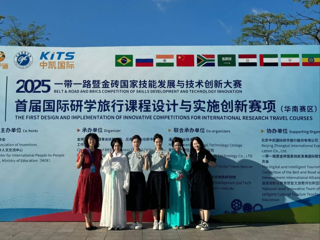 10月17日至19日,2025“一带一路”暨金砖国家技能发展与技术创新大赛首届国际研学旅行课程设计与实施创新赛项(华南赛区)在福建莆田湄洲湾职业技术学院成功举办。此次赛事共吸引来自广东、广西、福建、海南等高校近40支队伍参加。我校经济管理学院李曦婷、冯烨瑜、梁紫盈、张倩珩组成的学生团队在张欣欣、汪舒君老师的悉心指导下,凭借扎实的专业技能、充分的赛前准备和出色的临场发挥,以总成绩第三名获得区域赛学生组二等奖并成功晋级全国总决赛。