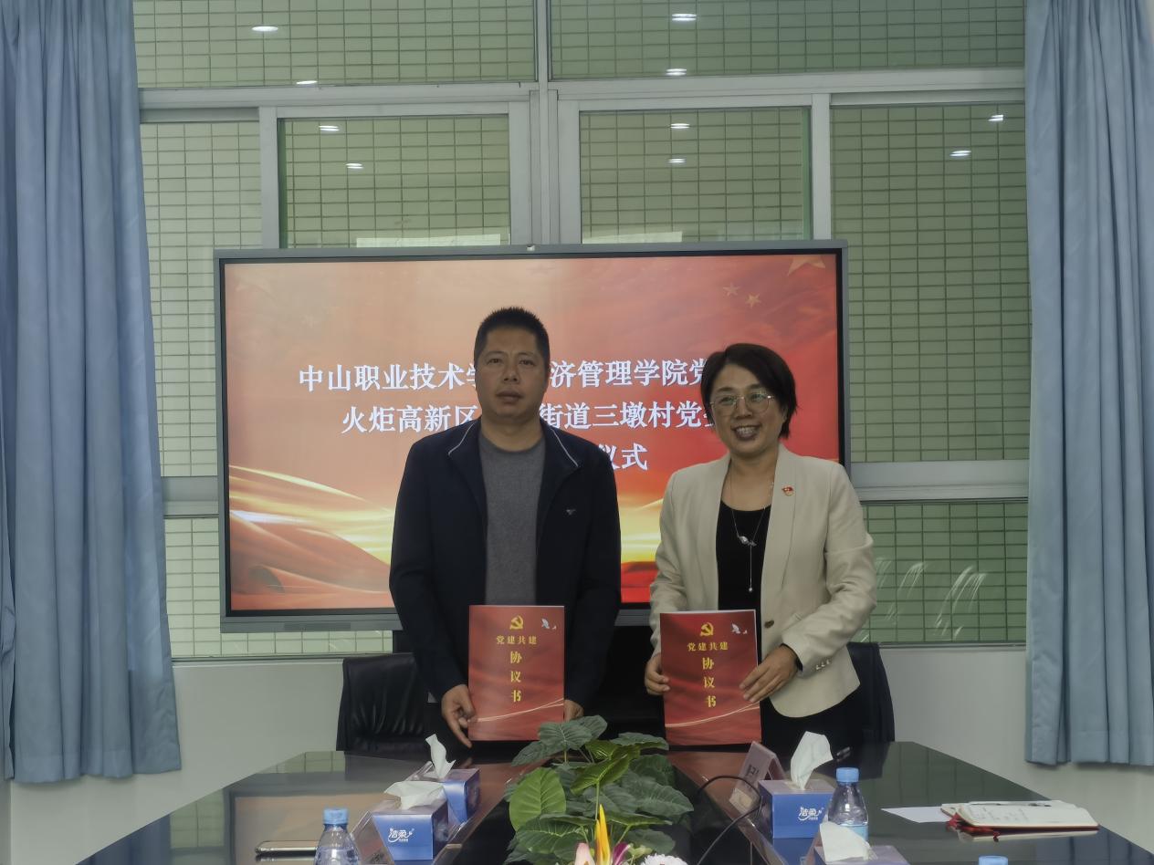 座谈会上,王文霞对冯嘉俊一行的到来表示热烈欢迎,并对三墩村支持我院开展“百千万工程”表示感谢,随后王文霞详细介绍了我院基本情况、发展特色,近年来,我院围绕区域经济和社会发展,发挥优势所开展的“百千万工程”“入镇下村”等方面的情况,她表示,此次党建共建以“百千万工程”为重要协作平台,未来将继续强化党建引领,深化校村合作,实现共赢发展。冯嘉俊对“墩墩鹅”突击队的服务表示真诚感谢,并详细介绍了三墩村当前“百千万工程”的相关进展及未来规划,双方一致表示,将紧密围绕“百千万工程”等中山高质量发展的目标任务,以党建引领乡村振兴为主要抓手,深化合作内涵,携手推动高质量发展。会上,学院党总支部与民众街道三墩村党委举行了党建共建协议签订仪式,双方约定,将持续发挥党建引领作用,促进党建与业务深度融合,不断拓展合作领域,充分挖掘双方优势与资源禀赋特点,为人才培养与地方经济社会发展贡献力量。