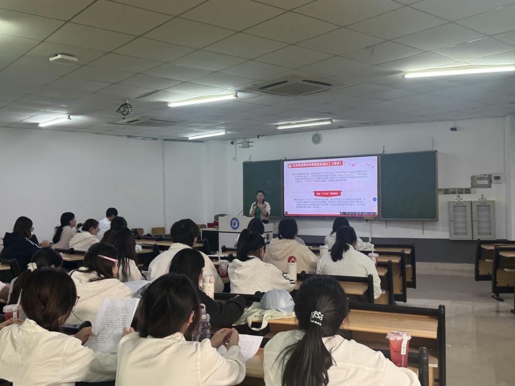 为深入学习贯彻党的二十届四中全会精神,引导广大学生党员与入党积极分子坚定理想信念、强化理论武装,12月4日下午,学院在经世楼112组织开展“阳光党课”专题学习活动。本次活动以“深学细悟全会精神凝聚青春奋进力量”为主题,通过专题讲授、心得分享、双语朗读、表彰交流等多种形式,推动党的创新理论入脑入心,凝聚青年奋进力量。学生党支部书记何敏、支部委员以及学生党员、入党积极分子共60余人参与学习。