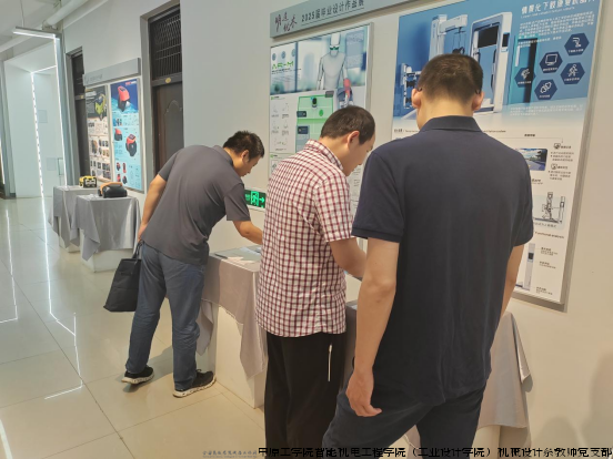 作品展在龙湖校区2号实验楼1楼工业设计中心举办。支部党员们认真观看了涉及智能医疗器械、现代机械设备、专业工具创新、智能机电产品、人性化家具设计等多个领域的精品毕业设计作品。这些优秀作品展现的前瞻性设计理念、创新性设计探索和深厚的工匠精神底蕴,受到支部党员们的一致称赞。