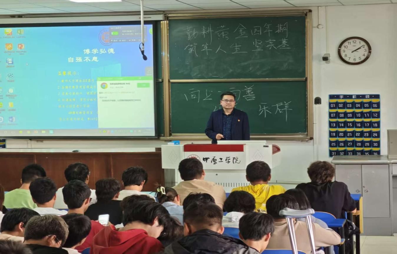 师生见面会结束后,院党委书记陈燃为新生带来了以“勤耕黄金四年期,筑牢人生坚实基”为主题的开学第一课。他从“向上”“向善”“乐学”“乐群”四个维度展开讲解,并提出四点期望:一要以“向上”立心,锚定成长方向,树立远大理想,主动关注国家发展大势,把个人发展融入国家战略需求与行业发展需要,实现与时代同频共振;二要以“向善”立身,自觉践行中华优秀传统文化中的“善德”理念,要始终牢记“明大德、守公德、严私德”,以大德引领方向,以公德约束言行,以私德锤炼品格,让“向善”成为成长之路的鲜明底色;三要以“乐学”立学,转变学习观念,变“要我学”为“我要学”,激发学习潜能,在扎实掌握专业知识的同时增强实践能力,全面提升综合素质;四要以“乐群”立行,积极融入集体生活,学会尊重差异、包容多元,在团队协作中锻炼能力,在真诚交往中收获友谊,为未来职场储备核心竞争力。他勉励全体新生要争做有理想、敢担当、能吃苦、肯奋斗的新时代青年,以实际行动为民族复兴和强国伟业贡献青春力量。