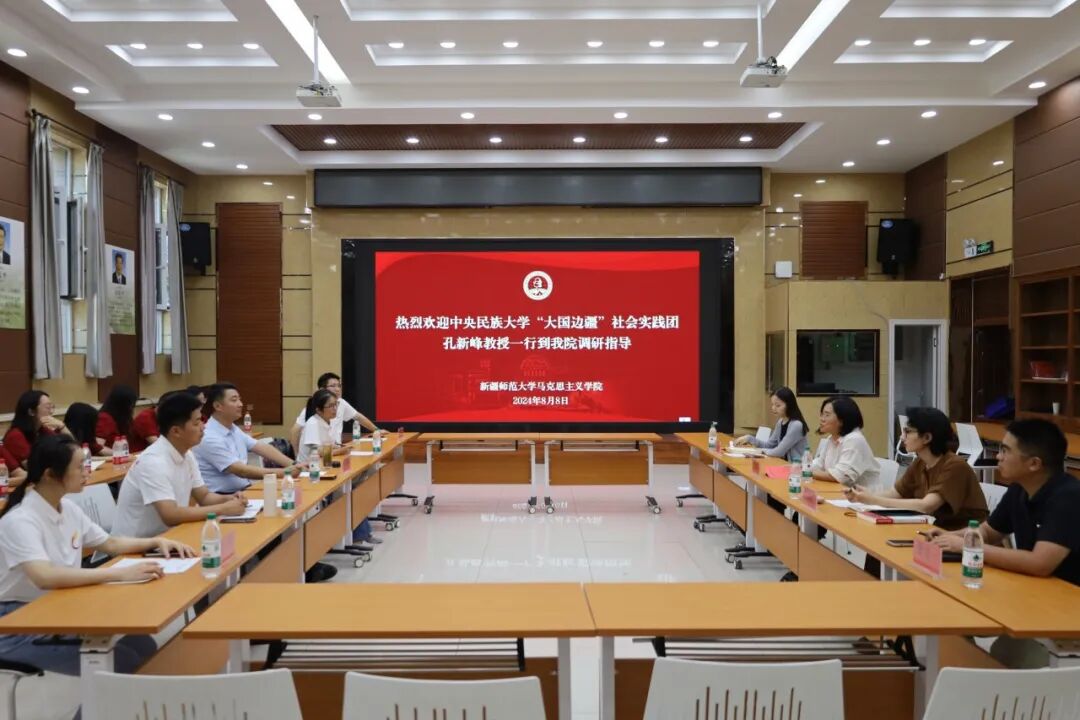 8月8日,实践团来到全国重点马克思主义学院——新疆师范大学马克思主义学院进行交流学习。中央民族大学优秀校友、新疆师范大学马克思主义学院院长张丽娟教授与成员们亲切交流,带领成员参观新疆师范大学马克思主义学院的信息化、一体化建设情况。
