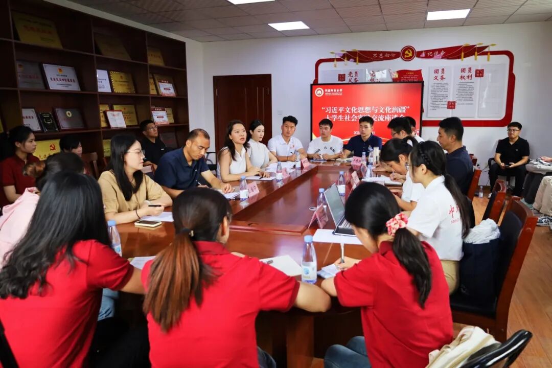 8月7日,实践团与新疆财经大学就社会实践在文化润疆中的作用进行交流。新疆财经大学是新疆重点建设高校,是丝绸之路大学联盟、财经一流学科建设联盟、新疆新文科教育联盟成员。新疆财经大学团委书记吴蕾指出文化润疆应重视青年骨干学生培养,通过制度化管理和建立多元实践平台,锻造出一柄“知行合一”的“利剑”;她建议乘着“一带一路”的东风,发挥西部计划作为新疆人才引进项目的战略意义,并号召同学们积极参与到西部计划中来,在大美新疆建功立业。
