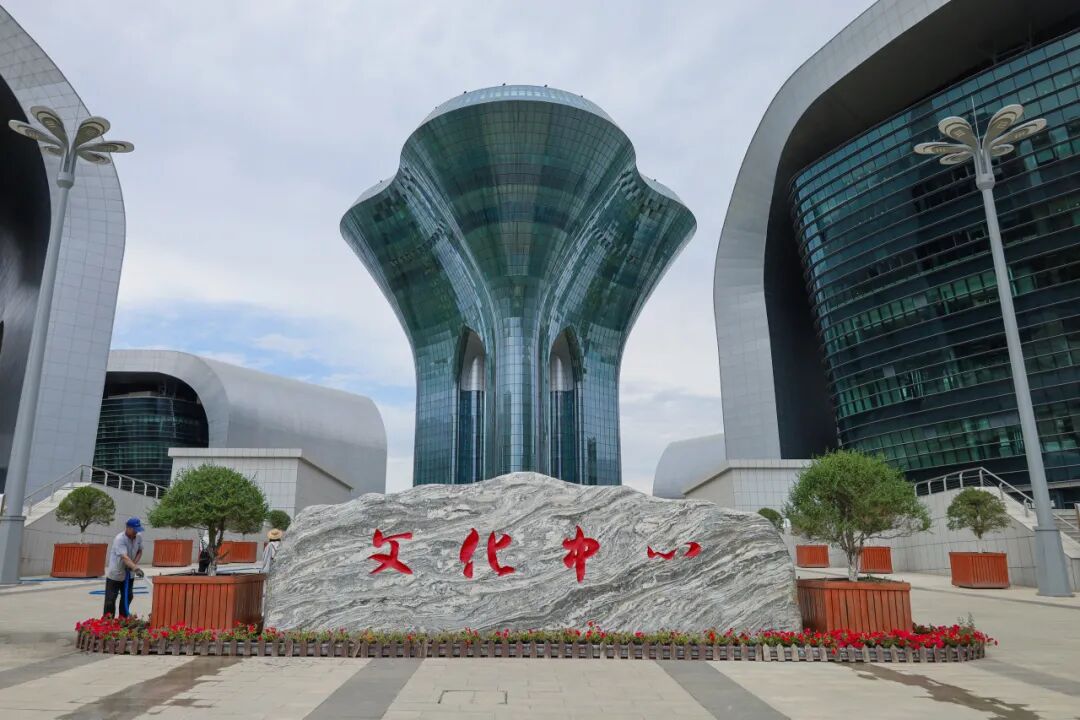 实践团新疆行的第一站来到了乌鲁木齐市文化中心。乌鲁木齐文化中心位于乌鲁木齐市水磨沟区凤起街,是乌鲁木齐倾力打造的“丝绸之路经济带核心区五大中心”之“文化科技中心”地标性建筑。六大功能场馆和中心文化塔呈现出象征团结、和谐、繁荣的雪莲花形象,体现出新时代中国特色社会主义乌鲁木齐包容、开放、融合的精神风貌。