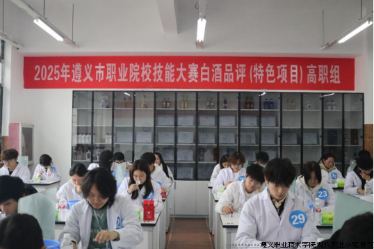 2025年11月6日上午9:00,“遵义职业白酒品评技能大赛”在遵义职业技术学院一食堂三楼白酒评鉴室内正式拉开帷幕。来自全市的参赛选手齐聚一堂,共同投身于这场专业严谨的白酒品评技能盛会。大赛围绕酒度识别、单体香气辨别、香型鉴别及质量差排序等五个环节展开,全面检验选手的感官灵敏度与专业判断力。赛场气氛庄重而热烈,选手们以扎实的基本功和专注的竞技状态,展现出新时代白酒品评人才的专业素养与匠心风采,体现了“以赛促学、以赛砺技”的鲜明导向。