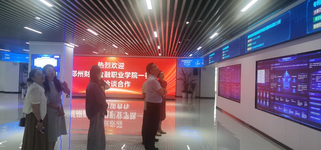 在郑州数据交易中心,调研团队受到了交易中心领导和工作人员的热情接待。交易中心负责人详细介绍了数据交易的流程、规则以及目前市场上的数据资产类型和应用场景。双方就如何将数据交易的实践经验融入到教学中,培养学生的数据资产意识和相关技能进行了深入探讨。
