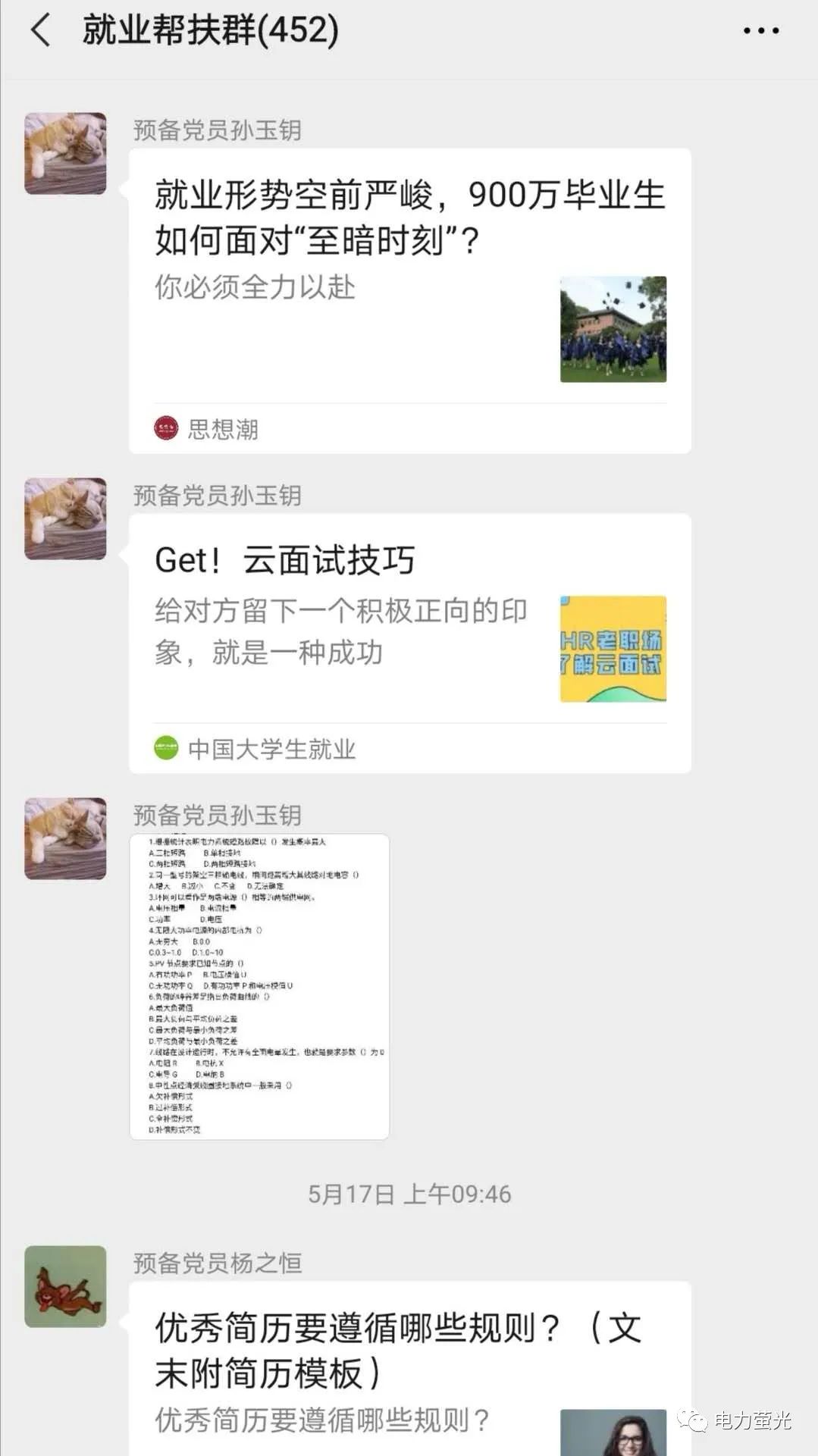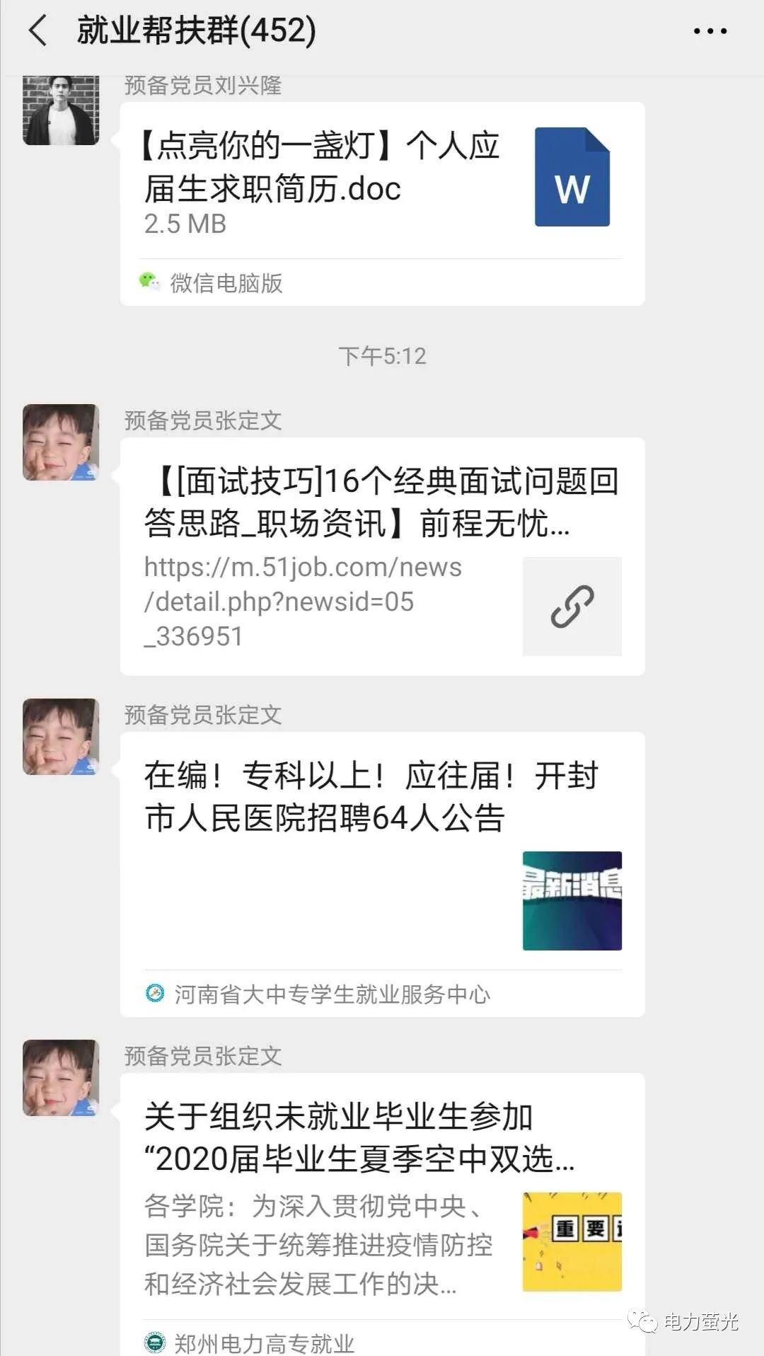 通过对未就业毕业生们实际需求的了解,支部党员们对已经运营一周的就业帮扶群进行了一次升级,例如面试经验分享,题目答疑及知识点的私下讲解等。
