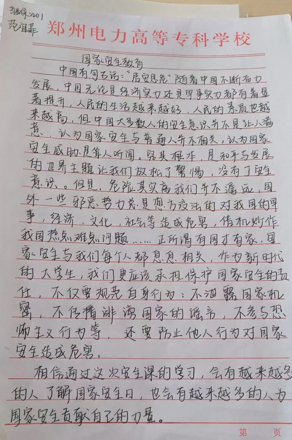 学校组织我们观看了国家安全教育宣传片和开展国家安全教育专题讲座,使我对国家安全教育的相关概念,从模糊转变到清晰,同时也让我明白了危害国家安全行为有哪些。
