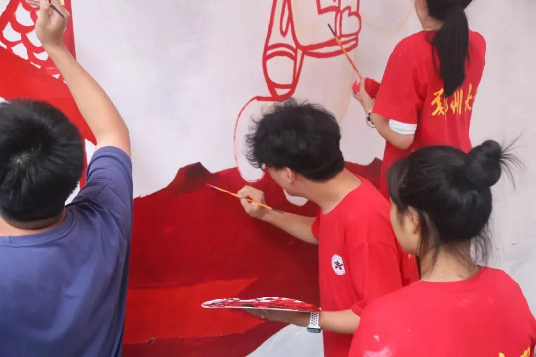 抵达卢氏县后,实践队员迅速投入到墙绘宣传工作中。在绘制过程中,实践团队员们充分发挥团结协作的精神,克服高温、蚊虫、大雨等困难,用心绘制每一幅作品。经过队员们几天的努力,原本单调的墙面摇身变为社区的亮丽风景线。居民们纷纷驻足欣赏,对队员们的作品表示肯定。