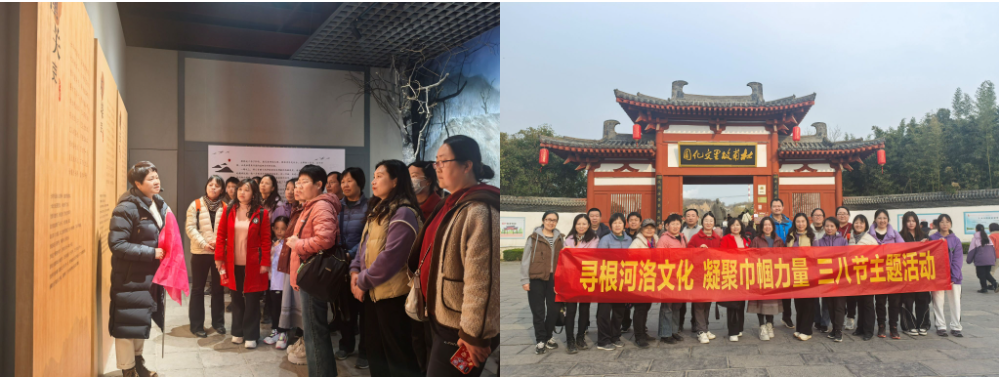 当日下午,女教工们登上邙岭远眺黄河与洛河交汇的壮阔画卷。河洛清浊相激的奇观,恰似中华文明兼容并蓄的生动写照。站在“河图洛书”传说起源地,大家畅谈感悟:“河洛文化是中华文明的根与魂,新时代女性既要当好文化传承者,更要成为创新发展主力军。”