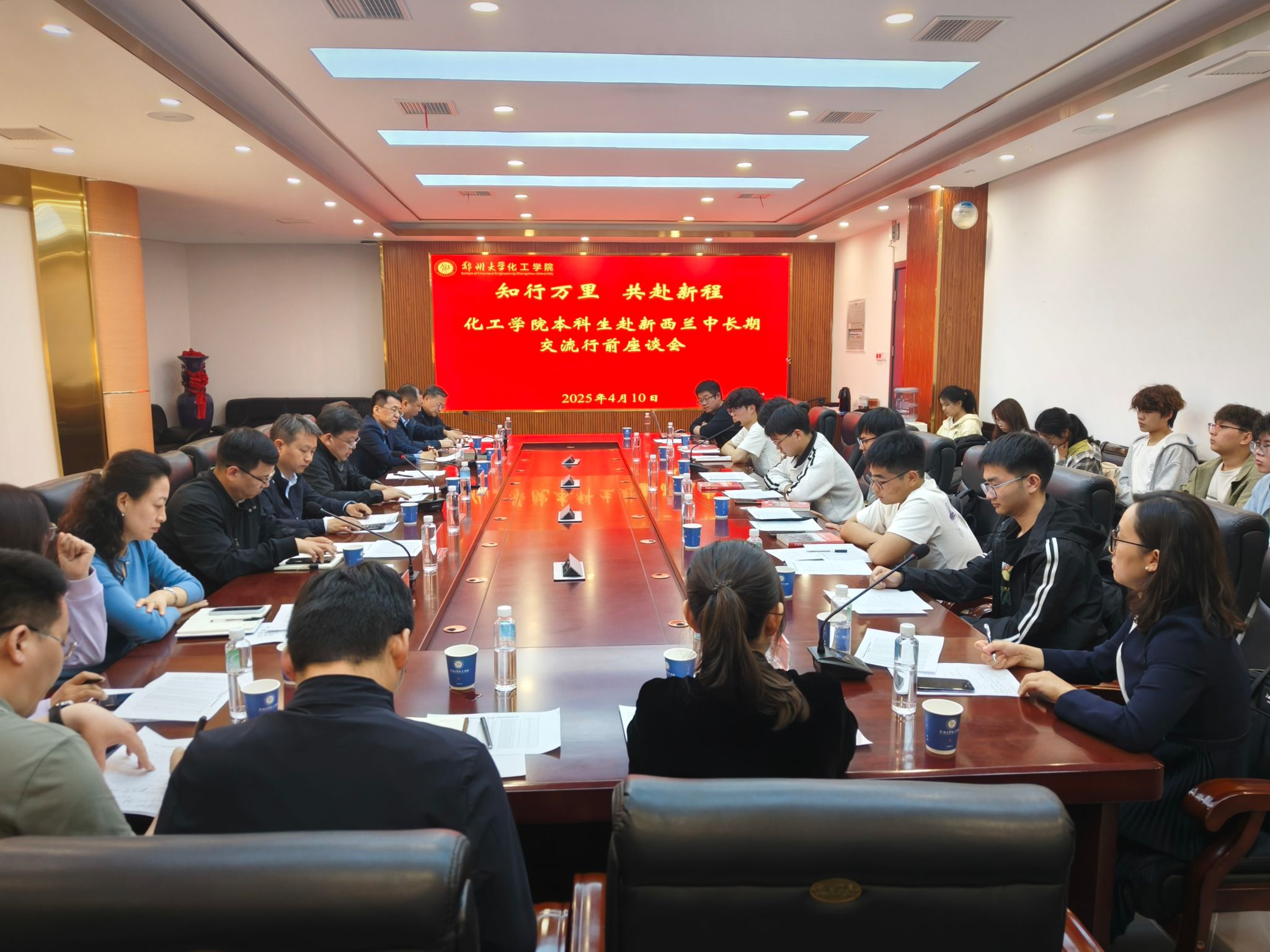为提升学校国际化办学水平,培养具有国际视野和国际竞争力的创新型人才,近日,郑州大学在化工学院召开“双千计划”新西兰项目行前座谈会。校党委副书记王利国出席会议,党委学生工作部、教务部、国际交流与合作处等部门负责同志及化工学院党政班子成员、学生辅导员、班主任和28名访学学生参加座谈。化工学院负责同志主持会议。