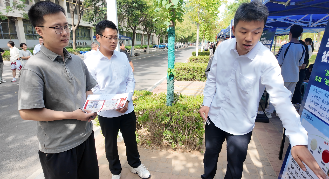 答辩环节中,选手们围绕技术原理、创新亮点、应用前景等方面进行系统阐述,并与评审专家展开了深入交流。评审专家从学术性、实用性和社会价值等维度给予专业点评,并就技术路线优化、成本控制等关键问题提供了宝贵建议。“看到学长学姐们的节能装置和调研报告,我对绿色科技有了更深的兴趣,明年我也要组队参加!”现场观摩的化工学院2024级本科生常奕蕊兴奋地说。
