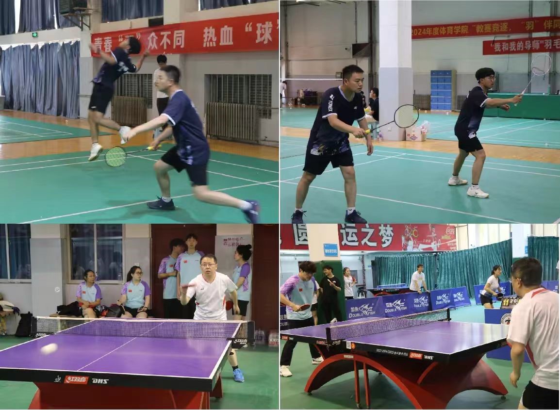 赛场上导师与学生组成搭档,展现出默契的配合和良好的竞技状态。羽毛球双打比赛中,师生组合攻防转换流畅,配合紧密;乒乓球单打比赛则精彩纷呈,激烈对抗引发观众阵阵掌声。参赛师生们奋力拼搏,既展现了竞技水平,也体现了师生间和谐融洽的关系。