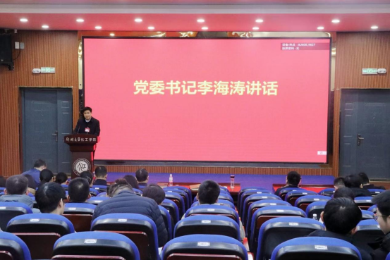 学院党委书记李海涛致闭幕词。他指出,2026 年是学院高峰学科建设的决战决胜之年,学科发展的成效直接关系学院长远发展与核心竞争力。他号召全院师生员工要将个人发展融入学院发展大局,始终坚持以高质量党建引领高质量发展,以时不我待的干劲凝心聚力、锐意进取,在教学科研、人才培养、社会服务等各领域勇攀高峰,奋力谱写学院内涵式发展新篇章,为郑州大学 “双一流” 建设贡献坚实的化工力量。