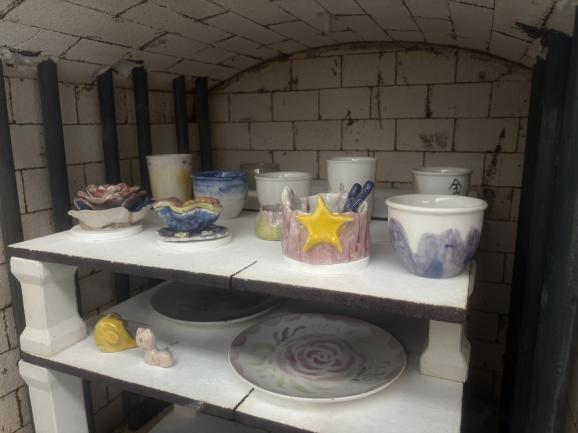 除了陶瓷制作,学生们还体验了陶瓷绘画。学生们发挥想象力,将现代审美融入古老艺术,在陶瓷上绘制出充满创造力的作品。而古文字学专业的独特优势也在活动中大放异彩:学生们将甲骨文、金文等古老的文字形式巧妙地融入创作,精心书写出“明德厚学”“永受嘉福”“舍得”“云”“雨”等古文字体,为陶瓷作品赋予了深厚的文化底蕴与独特的艺术魅力,展现出传统与现代交融的独特风采。