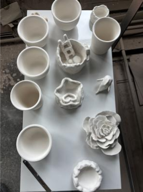 在实践基地,学生们仿佛穿越时空,化身为古代的“匠人”,在基地导师王新杰、张富宽的悉心指导下,沉浸式地体验了拉坯、雕刻、修胚、上色、施釉等一系列传统制陶工艺。陶瓷制作不仅是一门技艺,更是一门充满无限创意与个性表达的手工艺术。学生们充分发挥自己的想象力,在揉泥、制作、修胚等环节中,运用拍、搓、捏、点等多种手法,精心塑造出形态各异、独具美感的陶艺作品。