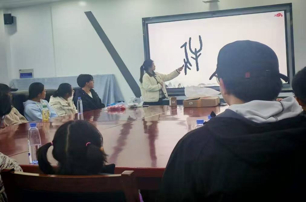 活动伊始,团队主讲人李璐利用PPT讲解了甲骨文的历史渊源与经典案例,让同学们初步了解了甲骨文的历史背景、发展脉络以及一些经典的字形结构,带领大家走进古老汉字世界的同时,也为后续互动环节奠定了知识基础。