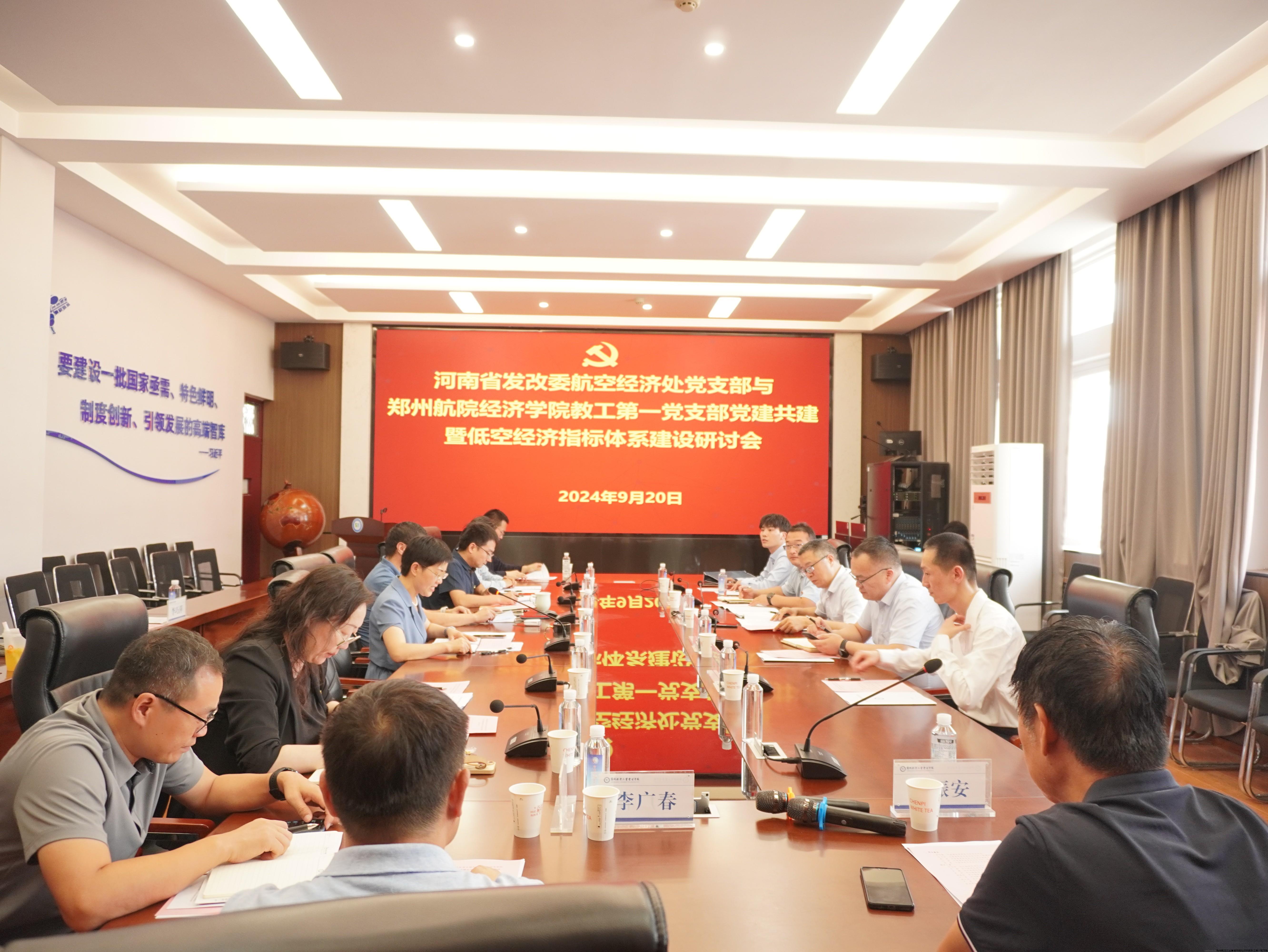 2024年9月20日郑州航院经济学院教工第一党支部与河南省发改委航空经济处党支部在郑州航院经济学院407会议室举行了党建共建暨低空经济指标体系建设研讨活动。经济学院党委书记贺琼、院长郝爱民、教工第一党支部全体党员和航空经济处处长、支部书记张传敏等航空经济处全体党员参加会议。此次活动是双方深化合作、共享资源、共谋发展的具体体现,标志着双方在低空经济领域的合作迈出了坚实的步伐。会议由经济学院党委书记贺琼主持。