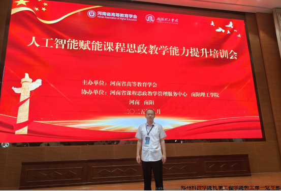 为深入贯彻习近平总书记关于教育的重要论述,落实《教育强国建设规划纲要(2024-2035年)》和2025年全国教育工作会议精神,扎实推进《高等学校课程思政建设指导纲要》与教育数字化战略行动,近日,由河南省高等教育学会主办,河南省高等学校课程思政教学管理服务中心与南阳理工学院共同承办的“人工智能赋能课程思政教学能力提升培训会”在南阳理工学院顺利召开。郑州科技学院机械工程学院机械制造教研室主任王桂录与来自全国多所高校的教育工作者共同参与,围绕人工智能技术在课程思政建设中的创新应用展开深入交流。