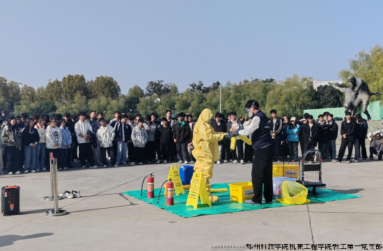 2025年11月12日上午10:00-11:00,机械工程学院组织师生代表,赴南苑操场参加由实验室与设备管理处主办的实验室危化品泄露应急演练。