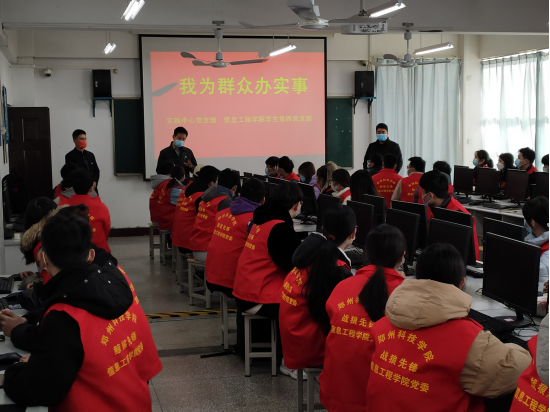11月22日,实践中心党支部向信息工程学院学生第四党支部志愿服务队员发放防疫口罩。实践中心党支部书记黄申,信息工程学院学生第四党支部书记钱誉,以及四十余名志愿者参加了发放活动。