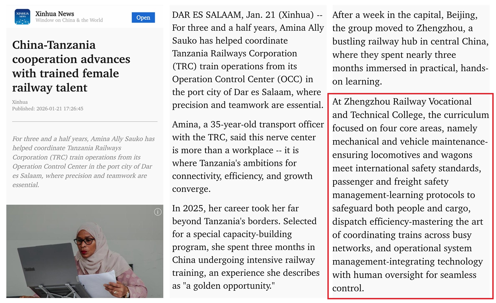 新华社专访我校坦桑尼亚学员Amina:以技赋能 续写中非铁路合作佳话