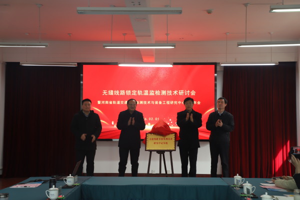 随后,在现场所有嘉宾的共同见证下,“无缝线路多源监测设备研发中试基地”正式揭牌成立。该基地的建立,标志着我校与郑州局、相关高校在技术研发与产业化对接方面进入了实体化合作的新阶段,将为新技术、新设备的试验验证与优化提升提供坚实平台,是打通从“技术原型”到“工程产品”关键一环的战略布局。