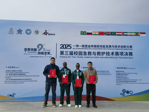 郑州铁路职业技术学院代表队在国际组比赛中表现卓越,留学生Maledu Goitsemang Itlotleng(安娜)与Mahlare Thato Legwai(李晨)凭借扎实的专业技能和出色的临场发挥,荣获国际组一等奖,指导教师张洪泉、赵江涛获评“优秀指导教师”,学校被授予“优秀组织奖”。本次大赛紧扣金砖国家“构建高质量伙伴关系,共创全球发展新时代”的时代主题,积极响应“人类卫生健康共同体”建设倡议,对提升教师现场急救素养、普及应急救护知识与技能、增强校园突发事件应对能力、完善校园应急救护体系具有重要意义。