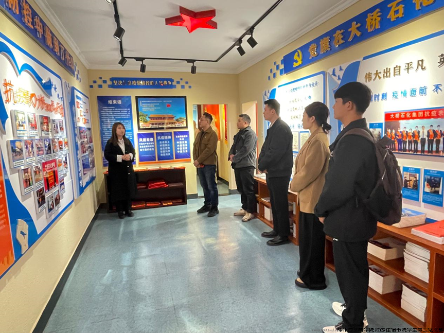 师生党员先后参观党建展馆、讲习所、播音室、电教馆等多个党员活动阵地,讲解员介绍大桥石化核心发展理念、党建“三力”经验,即党建做实了就是生产力,党建做强了就是竞争力,党建做细了就是凝聚力。二楼红色书刊、手抄党章、党员学习自测题、《学习二十大快板书》等各具特色的红色元素和浓厚的学习氛围让大家眼前一亮。
